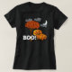 Leichte T - Shirt Halloween oder Ernte Party Kostüme für die Eltern. Ideal für Ihr kirchliches Party! Niedliche Pumpkin-Familie stehend von einem Baum mit Orangen Herbst Blätter auf einem mit einem schwarzen T - Shirt. Weißer Mond und Wolken mit einer freundlich lächelnden Halloween Pumpkin Head Familie mit einem freundlichen BOO! Mit sonnigen Augen auf jedem großen Buchstaben!