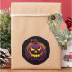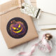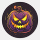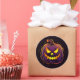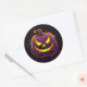 Rundaufkleber wird mit einem Halloween beängstigenden Kürbisprint gezeigt. Passen Sie dieses Objekt an oder kaufen Sie, wie es ist.