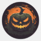 Rundaufkleber wird mit einem Halloween beängstigenden Kürbisprint gezeigt. Passen Sie dieses Objekt an oder kaufen Sie, wie es ist.