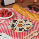 Eine festliche Halloween-Papiertafel mit niedlichem Kürbis- und Katzenmuster, ideal zum Servieren von Leckereien an Halloween-Partys und Ansammlungen.