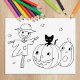 Halloween Pumpkins und Scarecrow Coloring Page Gummistempel