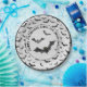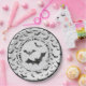 Das ist ein zufälligeres Halloween-Fledermausmuster mit weißem nebeligen Hintergrund. Er ist mit einem schwarzen Ring um den Rand beschnitten.