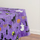 Dieses Halloween-Grafikdesign ist ein zufälliges ikonisches Muster mit Hexen, Fledermäusen, Silhouetten von schwarzen Katzen und mehr bedruckt auf einem lila texturierten Hintergrund. Eine lustige Art, Ihre Küche oder Ihr Esszimmer zu dekorieren.