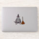 Dieses phantastische, geformte Aufkleber-Blatt weist ein digitales Kunstbild einer niedlichen, grauen Ratte mit rosa Ohren, Nase, Füßen und Schwanz auf. Die Ratte trägt einen schwarzen spitzen Hut mit einem goldenen Schnürchen und lila Sternen. Die Ratten tragen auch einen schwarzen Umhang, der auch mit lila Sternen bedeckt ist. Neben der Ratte ist ein brauner Besen aus Zweigen. Diese Ratte ist bereit für ein Halloween-Party.