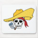 Cartoon Clipart Halloween Urlaubsbild mit einem toten Raucher-Schädel. Das beängstigende Skelett trägt einen hellgelben Hut und eine rote Piratenbandana. Día de los Muertos, Tag der Toten Feier.