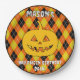 Set den Tisch in sprichwörtlichem Stil mit diesen anpassbaren Halloween-Tellern! Diese Teller mit einer festlichen Raute in Schwarz, Orange, Gelb und Weiß und einer hellen Orange-Jack-o’-Laterne in der Mitte sorgen für die perfekte saisonale Touch in Ihrem Party. Personalisieren Sie sie mit Namen, Daten oder einer Nachricht, damit Ihr Halloween Geburtstag, Party oder Ihre Ansammlung unvergesslich werden.