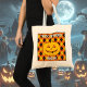 Tragen Sie Ihre Süßigkeiten stilvoll mit dieser individuell gestaltbaren Trick-oder-Leckerei-Tasche mit festlichen Raute in Schwarz, Orange, Gelb und Weiß. In der Mitte befindet sich eine fröhliche Jack-o’-Laterne, die die perfekte unheimliche Touch verleiht. Diese Tasche ist haltbar und wiederverwendbar, ideal für Halloween-Abend, Schulveranstaltungen oder festliche Herbstausflüge. Personalisieren Sie es mit einem Namen oder einer Nachricht, um es für Ihren kleinen Geist oder Ghul besonders zu machen.