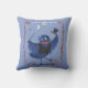 Ein tiefblauer Federvogel ist formell in einer satinierten Weste, orangefarbener Bugs-Krawatte, einem Oberhut und einem Stock gekleidet, während er unter dem weißen Halbmond auf einem Baumarm tanzt.