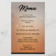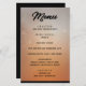 Ein einfaches, aber elegantes, subtiles Orange-, Grau- und Schwarz-Menü, das perfekt für eine Halloween Hochzeit oder ein Event geeignet ist...passt zu der Halloween Ravens Hochzeitseinladung.