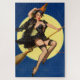 Große Vintage Pinup Girl-Illustration. Cooles Retro-Button-Aufgemälde einer Hexe, die auf dem Besatz fliegt. Halloween pinup Hexendesign auf vielen hochwertigen Produkten und Geschenkideen.