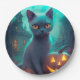 Halloween Russian Blue Cat mit Pumpkins Beängstige Pappteller