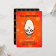 Halloween-Kegelschädel auf schwarz-orangefarbener Party Einladung. Alle Texte und Zahlen sind personalisiert.