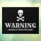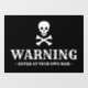 Warnung Schwarz-Weiß-Schädel benutzerdefinierten Text Halloween Piraten Warnzeichen Fenster Klonen. Vollständig anpassbarer weißer Text und Skelett, schwarzer Hintergrund. Schreiben Sie Ihren eigenen Text, ideal für Halloween-Party und Dekorationen.