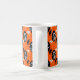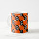 Ein niedliches Muster eines weißen Skeletts und des Geistes, der schwarzen Katze und des Mondes mit einigen Sternen, gegen einen hellen orange Hintergrund. Groß für Halloween und für die die gespenstische Skelette, Katzen und Geister der Liebe.