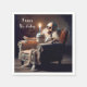 Ein Skelett sitzt in einem abgenutzten Sessel und hält einen Kuchen mit einer beleuchteten Geburtstagskandale für Halloween Geburtstagsparty. Text kann geändert werden.