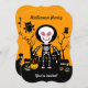 Dieses Produkt ist ideal, um Halloween mit Kindern zu feiern. Dieses Kind trägt ein Skelettkostüm und ist bereit, mit Freunden zu tricksen oder zu gönnen. Er ist das Skelett mit KürbisLaterne. Es wurde mit einfachen geometrischen Formen und traditionellen orangefarbenen Farben erstellt. Schwarzes Spuk Haus im Hintergrund, Winterbäume, Eulen und Fledermäuse.