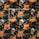Ein hübsches, handgemaltes Halloween-Muster mit Kürbis, Schädeln, Fledermäusen und Blume im Herbst auf schwarzem Hintergrund. Die kräftigen Orangen- und Schwarzwöne verleihen dem Hotel ein Vintages, gemütliches Ambiente, das sich perfekt für saisonale Stoffe, Steppdecken und festliche Dekoration eignet.