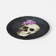 Servieren Sie Ihre Party auf dieser gotischen, blumengeschmückten Papiertüte mit einem weißen Schädel, der mit lila Rose auf schwarzem Texturhintergrund besticht. Ideal für Ihre Halloween-Party- oder Gothic-Themenveranstaltungen.