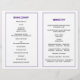 Dieses moderne und unterhaltsame und dennoch elegante Hochzeitsprogramm wird durch die Kombination von Skullen und Rahmen ergänzt. Ein schwarz-weißes Schädelpaar mit einem lila Hut für den Bräutigam und einem Bogen für die Braut und einer Schädelgrenze sind die Hauptelemente auf Elfenbeinhintergrund. Der Papierwerttyp faltet sich gut. Wählen Sie es und falten Sie in der Mitte, um ein Büchlein gefaltet Programm perfekt für ein Halloween- oder lustiges gotisches Hochzeitsthema zu haben.