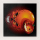Beängstigendes und gruseliges Halloween Schädel und Jack O'Lantern Pumpkin auf schwarzem Hintergrund. Design Copyright BluedarkArt.