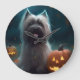 Halloween Skye Terrier mit Pumpkins Beängstigend Große Wanduhr