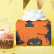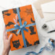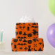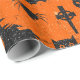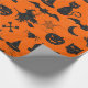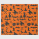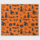 Halloween-Spaß-Thema-Verpackungs-Papier - Geister, Kürbise, Hexen, Schläger u. Knochen - in Imitat schwarzem Glitzer auf orange Hintergrund