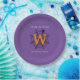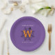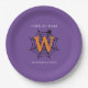Halloween Spider Web Trick oder Treat Monogram Paper Teller mit lila Hintergrund. Frohe Halloween! Feiern Sie die beängstigende Nacht des Jahres mit dieser Spinnennetz-, Spinnen- und Monogramm-Erstausführung in Schwarz, Weiß und Orange. Mit dem Text "Trick or Treat", der auf Ihr gewünschtes Zitat geändert werden kann. Text bereit, um mit Ihrem Namen und Initial anpassen.