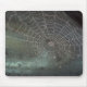 Ein Spinnennetz über einer nebelhaften Morgenwindschutzscheibe des Glases ihm einen unheimlichen gruseligen Blick gerade für Halloween gebend!