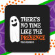 Dieses lustige Halloween-Design ist perfekt für eine leckere, spukhafte Saison für & alle, die Halloween LIEBEN haben! Ideal für ein kinderfreundliches Halloween-Party oder für ein Halloween-Märchen das ganze Jahr über! Features 'There's No Time Like The Presence' lustige Happy Halloween Witz Geist-Pun & niedliche spoky Ghost Grafik.