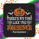 Dieses lustige Halloween-Design ist perfekt für eine leckere, spukhafte Saison für & alle, die Halloween LIEBEN haben! Ideal für ein kinderfreundliches Halloween-Party oder für ein Halloween-Märchen das ganze Jahr über! 'There's No Time Like The Presence' witziger Halloween Witz Geist Geist-Pun und niedliche geile Halloween Kürbis Gesichtsgrafik.