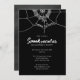 Spooky Spinne in einem Spinnennetz. Sind Sie bereit für Halloween-Spaß? Dann werden Sie diese spitzige, schwarze Spinne, die mit einem spukhaften Netz beschäftigt ist, Liebe geben. Der Hintergrund ist vollständig editierbar und kann in jede Farbe geändert werden. Dieses lustige skurrile Design wird sicher sein, dass Ihr Halloween richtig losgeht. Die spuke Spinne spinnt ein Halloween-Gruß im Netz, um euch ein glückliches Halloween zu wünschen. Dieses Design bietet Einladungen zum Halloween-Party, sprichwörtliche beängstigende, gruselige Spinnennetze, fröhliche Halloween-Typografie, Schwarz-Weiß-Insekt-Illustration, whimsical niedliches Halloween-Party laden, minimalistische Typografie, Cobweb-Illustration, Halloween-Kostüm-Party Einladung, glückliche Halloween-Spooktacular-Party Einladung. Sie können die QR-Vorlage für Ihre Karte-URL verwenden, und Facebook-Ikone, eine tolle auf Ihre Facebook-Veranstaltungsseite zugreifen.