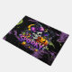 Halloween Spooky Hexe Skeleton Doormat. Ideal für draußen oder drinnen, um die Halloween-Saison zu feiern. Die lebhaften lila, schwarzen und orangefarbenen Farbtöne sind ein tolles Halloween-Fetisch für die Liebhaber des Tricks. Fügen Sie das zu Ihrem Halloween Dekorthema hinzu! Viel Spaß und Sicherheit zu Halloween!