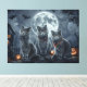 Entfesseln Sie den spukhaften Geist mit diesem unheimlichen Halloween-Design, das eine Gruppe Katzen unter einem dunklen, mondbeleuchteten Himmel bietet, umgeben von fliegenden Fledermäusen und glühenden Kürbissen. Ideal für diejenigen, die mit ihren wütenden Freunden eine Touch voller Furcht Liebe haben!