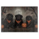 Entfesseln Sie den unheimlichen Geist mit diesem unheimlichen Halloween-Design, das eine Hundepackung unter einem dunklen, mondbeleuchteten Himmel bietet, umgeben von fliegenden Fledermäusen und glühenden Kürbissen. Ideal für diejenigen, die mit ihren wütenden Freunden eine Touch voller Furcht Liebe haben!