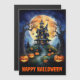 Senden Sie ein kurzes Lächeln mit dieser skurrilen Halloween-Magnetkarte, mit einem Spuk Haus auf einem Hügel und leuchtenden Kürbissen im Vordergrund. Der dunkle Nachthimmel mit Mond und verdrehten Bäumen schafft eine gesellige Atmosphäre, schön in Aquarell und Stift gemacht. Auf der Vorderseite enthält das Design den anpassbaren Text "Happy Halloween", oder Sie können es mit Ihrer eigenen Nachricht personalisieren. Es ist eine wunderbare und doch bezaubernde Art, den Halloween-Geist zu teilen. Ideal für Spuk Hausliebhaber, Kürbisfans und für jeden, der die schönen Halloween-Karten liebt.