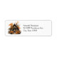 Adressetiketten mit einer coolen und sprichwörtlichen Abbildung eines Spuk Holzhauses. Umgeben von großen orangefarbenen Kürbissen und Bäumen mit orangefarbenen Blätter. Fenster mit orangefarbenen Lichtern sorgen für ein schönes Licht. Spaß Halloween Design.