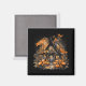 Ein Magnet mit einer coolen und sprichwörtlichen Abbildung eines Spuk Holzhauses. Umgeben von großen orangefarbenen Kürbissen und Bäumen mit orangefarbenen Blätter. Fenster mit orangefarbenen Lichtern sorgen für ein schönes Licht. Spaß Halloween Design.