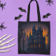 Halloween Spuk Mansion Tote Tag mit einem spukhaften Spuk Haus umgeben von verwinkelten Bäumen und einer unheimlichen Atmosphäre. Dieses Produkt ist Teil unserer Spuk Herrenkostüm-Sammlung für Erwachsene Halloween Party. Das Spuk Herrenhaus-Thema findet sich in dieser Sammlung und wird Sie oder Ihre Gäste begeistern. Sehen Sie sich unsere Kollektion für die Erholung der koordinierenden Produkte und der Einladungssuite an.