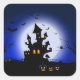 Grosser quadratischer Aufkleber, der in einem eindringlichen Halloween Kürbiszebrokus gezeigt wird. Passen Sie dieses Objekt an oder kaufen Sie es, wie es ist. Archivbild freepik.com