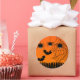 Rundform Aufkleber in einem Halloween Spinnen- und Fledermausdruck. Passen Sie dieses Objekt an oder kaufen Sie es, wie es ist. Archivbild freepik.com