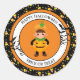 Dieser große Rundaufkleber wird in einem niedlich festlichen Halloween-Kürbiskürbiskürbiskinderprint gezeigt. Passen Sie dieses Objekt an oder kaufen Sie, wie es ist. Börsenbild all-free-download.com