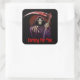 Grosser quadratischer Aufkleber, der in einem beängstigenden Halloween-Sensenmann gedruckt wurde. Passen Sie dieses Objekt an oder kaufen Sie es, wie es ist. Archivbild freepik.com