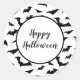 Kleiner Rundaufkleber wird in einem Halloween-Fledermausdruck gezeigt. Passen Sie dieses Objekt an oder kaufen Sie, wie es ist.