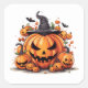 Dieser Aufkleber wird mit einem festlichen Halloween-Kürbiskunstdruck gezeigt. Große Größe angezeigt Anpassen Sie dieses Objekt oder kaufen Sie, wie es ist.