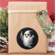 Niedliche Halloween Stickers Ungewöhnliches Halloween Stickers, Niedlicher Geist mit einer antiken Kerze im Dunkeln. Schwarzer Hintergrund. Großartige Aufkleber für Ihr beängstigendes Halloween-Party. Spooky Sticker