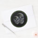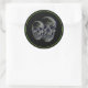 Halloween Stickers Dieser große runde Aufkleber wird mit einem unheimlichen Halloween-Schädel-Kunstdruck gezeigt. Passen Sie dieses Objekt an oder kaufen Sie, wie es ist. Börsenbild freepik.com
