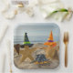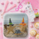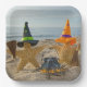 Seesternpaare am Strand mit Besen, schwarzem Wasserkocher und Hexenhüten.