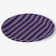 Diese Halloween-Papiertafel wird mit einem festlichen schwarzen und lila Streifen-Design gezeigt. Größe 9" Anpassen Sie dieses Objekt und wählen Sie Ihre Größe der Platte oder kaufen, wie es ist.