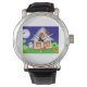 Vintage Männeruhr mit schwarzem Lederarmband