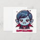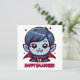 Dieses Design präsentiert einen charmanten kleinen Vampir mit stilisierten und kindlichen Eigenschaften, perfekt, um den Geist von Halloween zu feiern. Der Charakter trägt eine blaue Haut mit subtilen Nuancen und rosierten Wangen, was auf eine jugendliche Unschuld hindeutet. Seine großen und ausdrucksvollen Augen sind von kleinen glitzernden Sternen begleitet, die dem Ganzen eine magische Taste hinzufügen. Die Vampirfrisur ist von tiefblau mit klareren Reflektionen, was einen angenehmen Kontrast zur Hautfarbe schafft. Er trägt einen klassischen Vampir-Anzug, bestehend aus einem hellroten Umhang mit Schwarz und einer roten Schmetterlingsknote mit weißer Erbse, was ihm eine elegante und zugleich fesselnde Luft verleiht. Die berühmten Hunde des spießigen Lächelns erinnern an seine Vampir-Identität, während sie einen bezaubernden, zugänglichen Verlauf beibehalten. Der Text "Happy Halloween" in abgerundeten und freundlichen Buchstaben überdeckt den Charakter und stärkt das Festival mit einer Typografie, die an die Geselligkeit und Freude der Halloween-Feierlichkeiten erinnert.